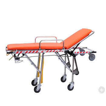 RHY-AL101救護車擔架產品特點:1.車部位有兩個輪子,高度可三檔調節,適合不同高度的車廂。2.防水海綿墊,頭部可調節,使病人舒適。3.配有自動保險鎖,上車時可以自動打開。4.折腿機構可由兩邊把手...